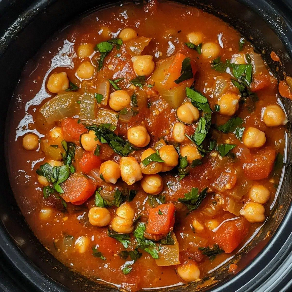 - Transfer the entire mixture to your slow cooker. Set the cooker to low and let it cook for 6 to 8 hours, or set it to high for 3 to 4 hours. The slow, gentle heat will coax the flavors together, turning the tomatoes into a silky sauce that coats each chickpea and vegetable.