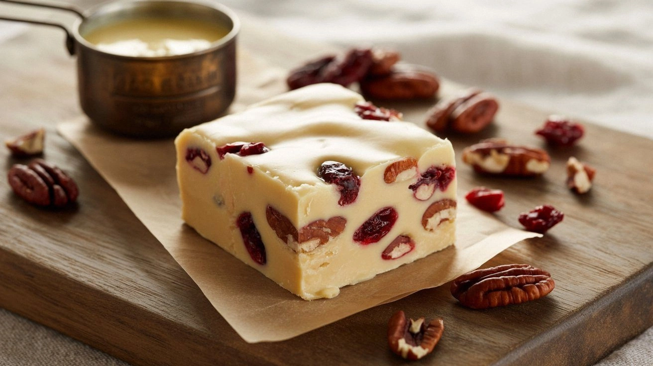 - Texture: The fudge’s smooth, creamy core contrasts with the crunchy, toasted pecans and chewy cranberries, giving it a multi‑sensory experience.